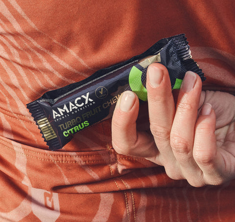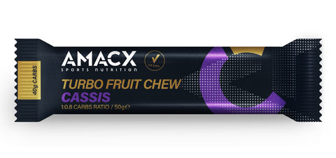 Amacx Turbo Fruit Chew Cassis Le Turbo Fruit Chew est un bonbon énergétique à mâcher spécialement conçu pour les athlètes ayant besoin d’une ingestion rapide et efficace de glucides. Avec un ratio amélioré de glucides de 1:0,8 (glucose:fructose), il permet une absorption rapide et optimale de l’énergie lors d’efforts intenses. Le Turbo Fruit Chew est idéal pendant le sport et facile à emporter avec soi. Disponible dans les saveurs rafraîchissantes Cassis et Citrus.